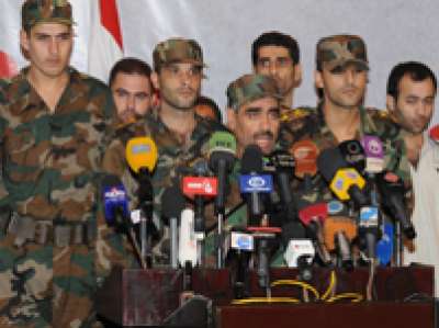 اعلن مقدم سوري مع مجموعة من العسكريين خلال مؤتمر صحافي في دمشق الاربعاء تخليه عن المعارضة المسلحة وعودته الى صفوف الجيش النظامي.