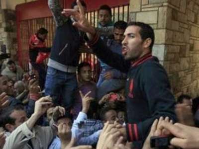 وتجمهر أكثر من 500 مشجع أمام بوابه مقر النادي في مدينة نصر مساء اليوم الأحد وفي نفس الموعد المحدد لتدريب الفريق الأحمر، وقرروا اقتحام الأبواب في ظل ضعف وقلة عدد رجال أمن النادي الذين لاذوا بالفرار.